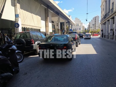 Διπλοπαρκαρισμένα αυτοκίνητα γέμισε το κέντρο της Πάτρας, το πρωί της Δευτέρας.