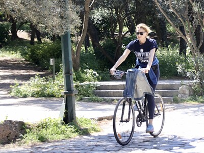 Λίγο πριν την άρση των μέτρων, ο φωτογραφικός φακός την απαθανάτισε να κάνει τη βόλτα της στου Φιλοπάππου παρέα με τον Μάξιμο Κωστόπουλο. Μαμά και γιος έκαναν ποδήλατο στους άδειους ακόμα δρόμους της πόλης.