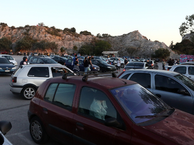 Το παρκινγκ του θεάτρου στο Λυκαβηττό θύμιζε ημέρα... συναυλίας καθώς εκατοντάδες Αθηναίοι έσπευσαν με τα ΙΧ τους να απολαύσουν το ηλιοβασίλεμα.