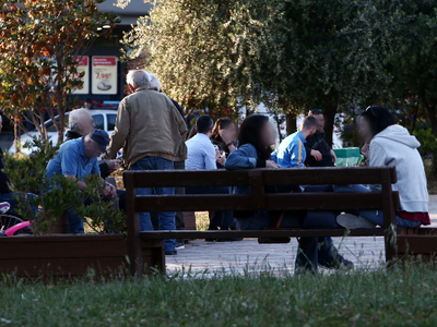 Άνθρωποι κάθε ηλικίας, ακόμη και ηλικιωμένοι, βγήκαν και κάθισαν σε παγκάκια, χωρίς να τηρήσουν τις συνιστώμενες αποστάσεις.