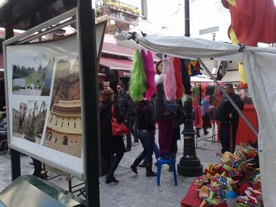 Με σκωπτικό τρόπο αντιμετωπίζουν πλέον οι Πατρινοί τα μεταλλικά πλαίσια που βρίσκονται ακόμα στην Αγίου Νικολάου, με τις κατεστραμμένες φωτογραφίες περιοχών της Αχαΐας.