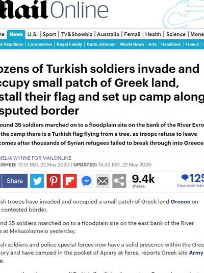 Η Daily Mail, αναφέρει ότι «ντουζίνες Τούρκοι στρατιώτες, εισέβαλλαν και κατέλαβαν μια μικρή περιοχή στην Ελλάδα, υψώνοντας την τουρκική σημαία», ενώ συνδέει το θέμα και με το προσφυγικό.