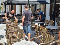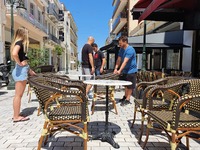 Και στην Πάτρα οι υπεύθυνοι των καταστημάτων ετοιμάζονται πυρετωδώς έτσι ώστε η μεγάλη μέρα να τους βρει πανέτοιμους. Τοποθετούν τα τραπεζάκια και τις καρέκλες μετρώντας τις αποστάσεις και καθαρίζουν τα μαγαζιά που έμειναν κλειστά για πολύ καιρό. Να σημειώσουμε ότι τα μαγαζιά θα επεκταθούν στους εξωτερικούς τους χώρους, όσο υπάρχει δυνατότητα.