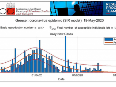 ία ενδιαφέρουσα έρευνα έδωσαν στη δημοσιότητα ερευνητές από τη Σχολή Ναυτικών Σπουδών και Μεταφορών του Πανεπιστημίου της Λιουμπλιάνα της Σλοβενίας σχετικά με την πορεία της πανδημίας του κορωνοϊού. Εφαρμόζοντας το μοντέλο SIR εκτιμάται πως το τέλος της πορείας του κορωνοϊού στην Ελλάδα θα είναι στις 6 Ιουνίου 2020 ενώ μέχρι τότε αναμένεται να νοσήσουν κατ΄ εκτίμηση 255 άτομα.