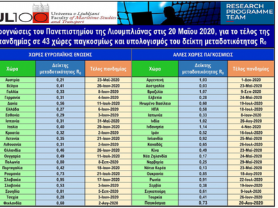 Αναφορικά με την Ελλάδα, όπως φαίνεται στο παρακάτω διάγραμμα, οι ερευνητές του Πανεπιστημίου της Λιουμπλιάνα προβλέπουν ότι το τέλος της πανδημίας θα πραγματοποιηθεί στις 6 Ιουνίου και ότι 255 ακόμα άτομα είναι ευάλωτα να μολυνθούν μέχρι το τέλος της πανδημίας, με σφάλμα ±61 άτομα. Η συγκεκριμένη εκτίμηση συμβαδίζει με τις προγνώσεις του μαθηματικού μου μοντέλου, που δημοσιεύτηκε στις 20 Μαΐου.