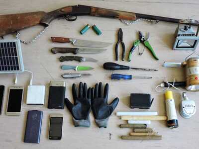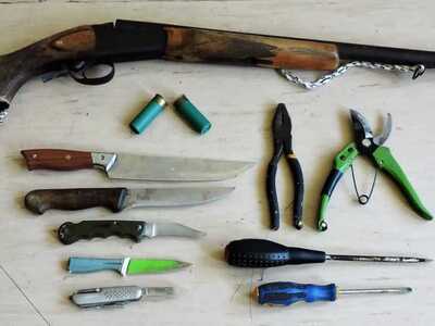 Από τις έρευνες που πραγματοποιήθηκαν στην ευρύτερη περιοχή του εντοπισμού του δράστη καθώς και στην κατοχή του βρέθηκαν από του αστυνομικούς μεταξύ άλλων, οπλισμένο κυνηγητικό μονόκαννο όπλο, δύο φυσίγγια, μαχαίρια, σουγιάδες καθώς και εξοπλισμός διαβίωσης στην ύπαιθρο. Συγκεκριμένα στην κατοχή του βρέθηκε και κατασχέθηκε τσαντάκι μέσης που περιείχε δύο κινητά τηλέφωνα και σε κοντινή απόσταση από το σημείο εντοπισμού του βρέθηκαν και κατασχέθηκαν ακόμη σακίδιο παραλλαγής, ένας υπνόσακος, 4 συσκευές αποθήκευσης ηλεκτρικής ενέργειας και κατσαβίδια.