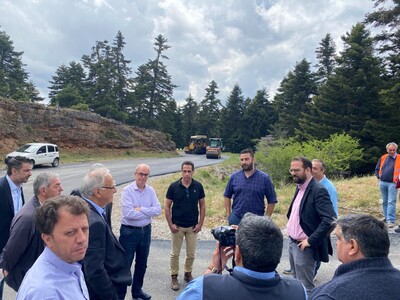 Επίσης, επισκέφθηκε τις εργασίες συντήρησης που εκτελούνται στον οδικό άξονα Σκεπαστό – Κερπινή – Πλατανιώτισσα. Ο δρόμος παρουσίαζε σημαντικές φθορές, και αποκαθίσταται με παρεμβάσεις ύψους 2,2 εκατ. ευρώ που περιλαμβάνουν επουλώσεις λάκκων εργασίες αποκατάστασης της βατότητας, σήμανσης, εργασίες αποκατάστασης τεχνικών έργων κ.α.