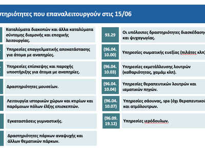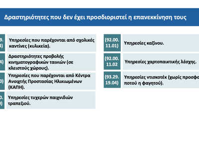 Ποιες δραστηριότητες δεν ανοίγουν