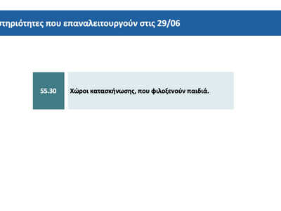 Οι δραστηριότητες που δεν έχει προσδιοριστεί χρονικά η επανεκκίνηση τους και είναι οι εξής: