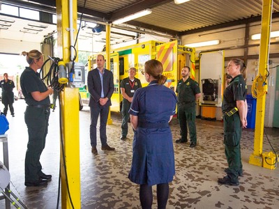 Σε ξεχωριστή περίσταση, ο Ουίλιαμ επισκέφθηκε τον Σταθμό Ασθενοφόρων Kings Lynn, ο οποίος στο πλαίσιο των υπηρεσιών του παρέχει 24ωρη κάλυψη για επείγουσα περιστατικά σε 6,2 εκατομμύρια ανθρώπους στην ανατολική Αγγλία.