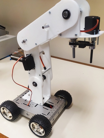 Το σύστημα υλοποιήθηκε αυτή τη στιγμή μέχρι το στάδιο του εργαστηριακού πρωτοτύπου, καθώς όπως φαίνεται και στις εικόνες που παρατίθενται έγινε εξαρχής σχεδιασμός σε ολόκληρο το σύστημα, καθώς και στον βραχίονα που φέρει. Το σύστημα σχεδιάστηκε εκ του μηδενός και κατόπιν τυπώθηκε σε 3d εκτυπωτή, ώστε να μειωθεί το κόστος σε σχέση με την αγορά βιομηχανικών προϊόντων, αλλά και να γίνει εύκολη η παραγωγή του όταν χρειάζεται. Επίσης έχουν σχεδιαστεί και υλοποιηθεί 3 διαφορετικού τύπου grippers έτσι ώστε να μπορεί να προσαρμόζεται κατάλληλα στις διάφορες εφαρμογές του.