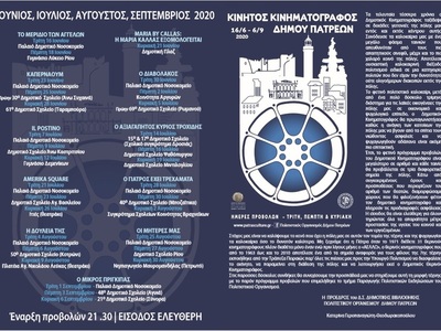 Ο Πολιτιστικός Οργανισμός του Δήμου Πατρέων, για την καλύτερη ενημέρωση των φίλων του κινηματογράφου, προχώρησε στην παραγωγή εντύπου, στο οποίο περιλαμβάνεται το αναλυτικό πρόγραμμα των φετινών προβολών που θα κρατήσουν έως και τον Σεπτέμβριο.