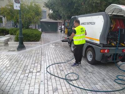 O μηχανολογικός εξοπλισμός του Δήμου Πατρέων ενισχύθηκε περαιτέρω, με δύο υπερσύγχρονα, υψηλής απόδοσης βυτιοφόρα πιεστικών οχημάτων πλύσης οδών και κοινοχρήστων χώρων, τα οποία χαρακτηρίζονται από την εξαιρετική ευελιξία τους, λόγω των διαστάσεών τους αλλά και τον μικρό κύκλο περιστροφής τους.