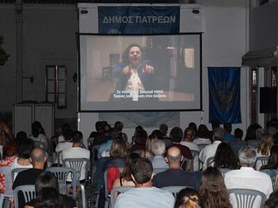 Για τον θεσμό του Δημοτικού Κινηματογράφου που διοργανώνει για 5 συνεχή χρονιά ο Πολιτιστικός Οργανισμός, μίλησε πριν την έναρξη της προβολής, η πρόεδρος του Πολιτιστικού Οργανισμού Κατερίνα Γεροπαναγιώτη, η οποία απηύθυνε παράλληλα κάλεσμα συμμετοχής των πατρινών στην κινητοποίηση της προσεχούς Κυριακής 5 Ιουλίου στις 9.00 το πρωί στην πλατεία Γεωργίου, που διοργανώνει ο Δήμος Πατρέων και η Επιτροπή Αγώνα Συλλόγων, για την υπογειοποίηση του τρένου, την δημιουργία Γραμμικού Πάρκου και την λειτουργία του Προαστιακού
