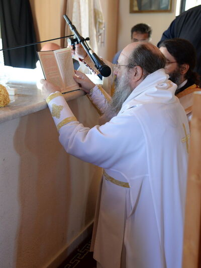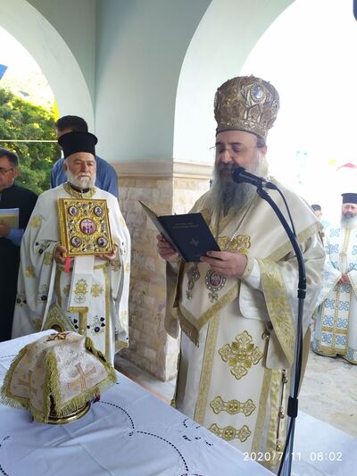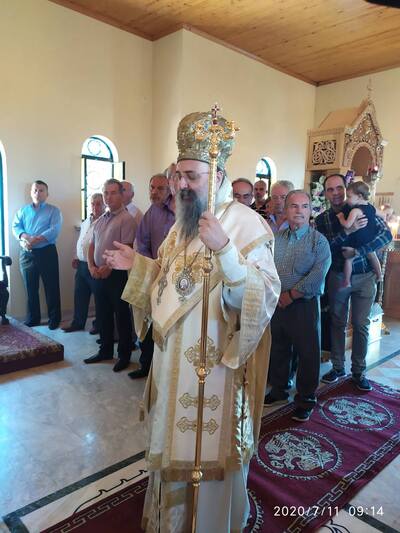 Ο κ.κ. Χρυσόστομος στό κήρυγμά του μίλησε ἐπικαίρως, ἐπαίνεσε τούς κτήτορες, μακάρισε τούς κεκοιμημένους καί ἀναφέρθηκε στήν σημασία ἀνεγέρσεως καί των εγκαινίων ἑνός Ἱεροῦ Ναοῦ γιά τήν ζωή τῆς Ἐκκλησίας, ἀλλά καί γιά τήν πορεία γιά τήν σωτηρία τῶν εὐσεβῶν χριστιανῶν.