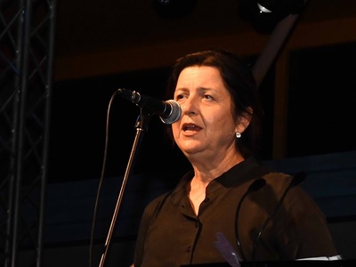 Η πρόεδρος του Πολιτιστικού Οργανισμού Κατερίνα Καραπαναγιώτη στον σύντομο χαιρετισμό της εξέφρασε την χαρά και την συγκίνηση της τονίζοντας πως « ανοίγουμε τις πύλες του Διεθνούς Φεστιβάλ Πάτρας, με το αφιέρωμα στο Θάνο Μικρούτσικο».