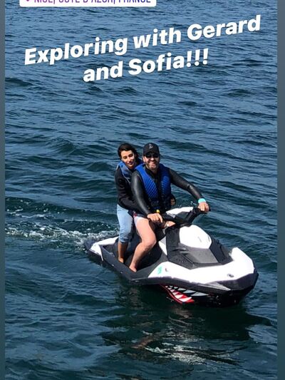 Στο ένα στιγμιότυπο ο Τζέραρντ Μπάτλερ βρίσκεται ξαπλωμένος στην αγκαλιά της Σοφίας Χαρμαντά, η οποία του χαϊδεύει τα μαλλιά, ενώ σε ένα άλλο οι δυο τους απολαμβάνουν τη θάλασσα, κάνοντας jet ski.