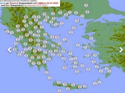 Θερμοκρασία: Από 24 έως 35 βαθμούς Κελσίου. Στα ανατολικά η μέγιστη 2 με 3 βαθμούς χαμηλότερη.