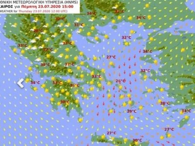 Θερμοκρασία: Από 22 έως 31 και στη νότια Κρήτη έως 33 βαθμούς Κελσίου.