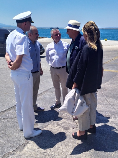 Ο κ. Γκριμάλντι κατά τη διάρκεια της παρουσίας του στο λιμάνι είχε την ευκαιρία να εκφράσει τις ευχαριστίες του προς τους κ.κ. Τσώνη και Ματούλα για την άριστη συνεργασία που έχουν με την εταιρεία και τους συνεχάρη για την εν γένει λειτουργία του λιμανιού.