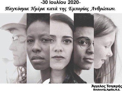 Με αφορμή τη Παγκόσμια Ημέρα κατά της Εμπορίας Ανθρώπων που τιμάται κάθε χρόνο στις 30 Ιουλίου, ο βουλευτής Αχαΐας της Νέας Δημοκρατίας Άγγελος Τσιγκρής (πρώην γενικός γραμματέας του Υπουργείου Δικαιοσύνης) έκανε την εξής δήλωση: