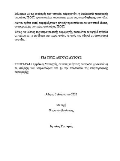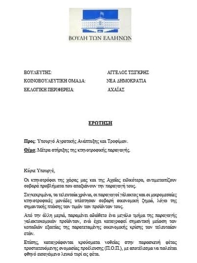 Σύμφωνα με την ερώτηση του Αχαιού βουλευτή: