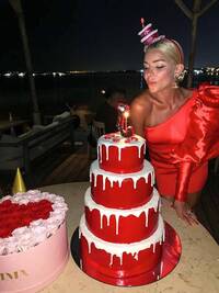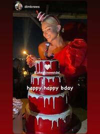 Ήταν πράγματι πολύ εντυπωσιακή και η εικόνα της ίδιας μπροστά από την έντονου χρώματος και... υπερπαραγωγή τούρτα της 'έγραφε' στον φωτογραφικό φακό.