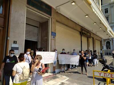 Διαμαρτυρία στο Υπουργείο Εργασίας στην Αθήνα, πραγματοποίησαν οι 111 εργαζόμενοι της Κοινωφελους εργασίας του δήμου Πατρέων. Ανάρτησαν πανό έξω από το Υπουργείο και ανέμεναν απάντηση για το αν θα συναντηθούν με τον Υπουργό.