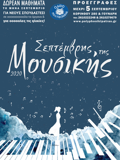 1η Σεπτεμβρίου, αρχίζουν οι εγγραφές στο ΩΔΕΙΟ της «ΠΟΛΥΦΩΝΙΚΗΣ». 22 Σχολές του ΩΔΕΙΟΥ της ΠΟΛΥΦΩΝΙΚΗΣ, με το έμπειρο και καταξιωμένο εκπαιδευτικό δυναμικό της, περιμένουν παλαιούς αλλά και νέους σπουδαστές όλων των ηλικιών, προκειμένου να συνεχίσουν ή να ανακαλύψουν τον υπέροχο κόσμο της μουσικής, πάντα με την υπογραφή της «Πολυφωνικής».