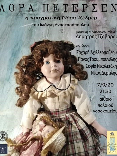 Ο «εγκλεισμός» της σύγχρονης γυναίκας, θα έρθει στο προσκήνιο στις 9.30 το βράδυ της Δευτέρας 7 Σεπτεμβρίου 2020, στη σκηνή του αίθριου, στο Παλαιό Δημοτικό Νοσοκομείο της Πάτρας, στην άνω πόλη όπου στο πλαίσιο της ενότητας «Βήμα στους νέους Καλλιτέχνες της πόλης» θ’ ανέβει η θεατρική παράσταση με τίτλο «Λόρα Πέτερσεν – η πραγματική Νόρα Χέλμερ».