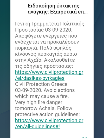Επείγον μήνυμα στο κινητό τους από την Πολιτική Προστασία έλαβαν πριν από λίγο εκατοντάδες Αχαιοί.