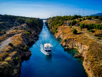 Από το 1893 στον πλάτους 6,3 χιλιομέτρων ισθμό έχει διανοιχτεί η Διώρυγα της Κορίνθου, που στην πράξη καθιστά την Πελοπόννησο νησί. Σήμερα δύο οδικές, δύο σιδηροδρομικές και δύο βυθιζόμενες γέφυρες στα δύο άκρα της διώρυγας συνδέουν την ηπειρωτική πλευρά του ισθμού με εκείνη της Πελοποννήσου. Στο δυτικό άκρο της διώρυγας βρίσκεται επίσης μια στρατιωτική γέφυρα έκτακτης ανάγκης.