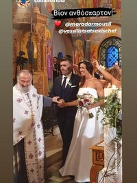 Τα σκαλιά της εκκλησίας ανέβηκε χθές το απόγευμα στο πλευρό του αγαπημένου της, Βασίλη Τσατσάκη η Μάρα Δαρμουσλή.