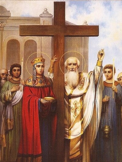Σύμφωνα με την παράδοση, το 326 μ.Χ., η γηραιά μητέρα του Μεγάλου Κωνσταντίνου, Αυγούστα Ιουλία Φλαβία Ελένη, μετέβη στους Αγίους Τόπους για να φέρει στο φως τα διάφορα μέρη στα οποία έζησε και δίδαξε ο Ιησούς Χριστός. Στα Ιεροσόλυμα πραγματοποίησε μεγάλες ανασκαφές για να βρεθούν οι τόποι της Σταύρωσης και της Ανάστασης του Ιησού Χριστού στον λόφο του Γολγοθά. Η Αγία Ελένη οδηγήθηκε στην εύρεση του Τιμίου Σταυρού από ένα αρωματικό φυτό που φύτρωνε στο μέρος εκείνο, τον γνωστό μας βασιλικό. Ύστερα από επίπονες ανασκαφές βρέθηκαν τρεις σταυροί, του Κυρίου και των δύο ληστών.