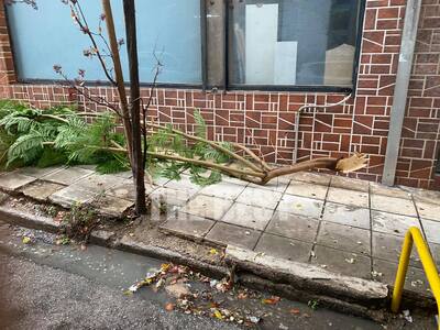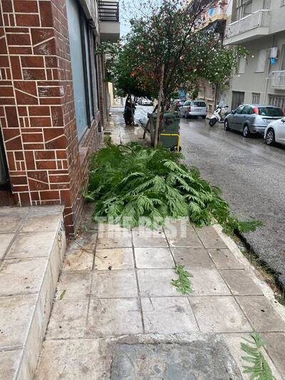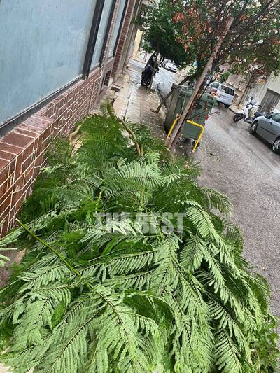 Ένα τεράστιο κλαδί δέντρου έπεσε λόγω της κακοκαιρίας, το μεσημέρι του Σαββάτου στην οδό Κωνσταντινουπόλεως, στο ύψος της Αστιγγος.