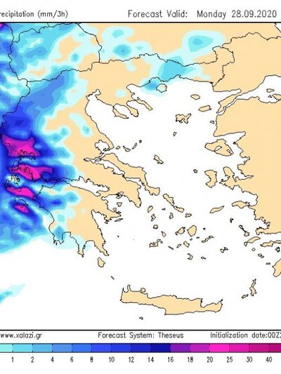 Τη νύχτα της Δευτέρας και τις πρωινές ώρες της Τρίτης (29 Σεπτεμβρίου, τα έντονα φαινόμενα είναι πιθανό να επηρεάσουν τη Θράκη και τα νησιά του βορειοανατολικού Αιγαίου.