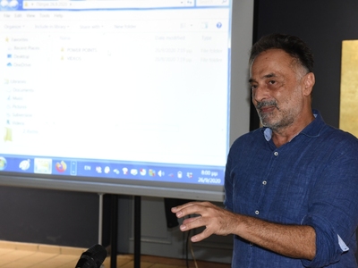 Προς το τέλος ιδιαίτερο ενδιαφέρον είχε η παρέμβαση του καθηγητή στο ΑΠΘ, ηθοποιού και σκηνοθέτη Γιάννη Μήτρου από το Διεθνές Εργαστήριο Έρευνας Παραστατικών Τεχνών, που παρακολούθησε τις ομιλίες αμέσως μετά το πολύ ενδιαφέρον βιωματικό σεμινάριο με τίτλο «Η μάσκα και η φωνή ως σωματικά φαινόμενα: η ζωντανή τελετουργία» που παρουσίασε και είχε ως στόχο την εισαγωγή στη θεωρία και τη πρακτική μεθοδολογία της χρήσης της μάσκας ως μέρος του σώματος του δρώντα. Οι τρεις επιστήμονες αντάλλαξαν απόψεις και είχαν ένα γόνιμο διάλογο. Οι θεματολογίες του εργαστηρίου και των ομιλιών άλλωστε ήταν σε αρκετά σημεία συγγενείς με άξονα το προσωπείο. Μέσα από το εργαστήριο αναδείχτηκε ότι ειδικά η χρήση του προσωπείου ή μάσκας τόσο σε καθαρά τελετουργικά δρώμενα είτε σε θεατρικές μορφές με προεξάρχουσα τη μορφή της αρχαίας τραγωδίας και μελετώντας τις σύγχρονες μεταθεατρικές φόρμες, παραμένει πάντα ένα ενεργό πεδίο έρευνας. Στο εργαστήριο προσεγγίστηκε το φαινόμενο μέσα από τη μέθοδο του Παριστάμενου Ποιητικού Λόγου που αναπτύχθηκε από τον Γιάννη Μήτρου και τους συνεργάτες του. Τα κείμενα ήταν των Σοφοκλή, Ευριπίδη, H.Muller, Beckett.