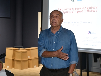 Ο καθηγητής Πανεπιστημίου Πατρών Γιάννης Μουρτζόπουλος περιέγραψε αποτελέσματα των μετρήσεων σε πρότυπα δείγματα αρχαίων προσωπείων, κατασκευασμένα ειδικά για τον σκοπό αυτό από τον σκηνογράφο και ενδυματολόγο Θάνο Βόβολη. Όπως τόνισε ο Γιάννης Μουρτζόπουλος: «Οι μετρήσεις είχαν ιδιαίτερα ενδιαφέροντα αποτελέσματα σε σχέση με την ένταση του ήχου που ακούει ο ηθοποιός (τόσο στην αρχαιότητα όσο και σε σημερινές παραστάσεις) φορώντας το προσωπείο αλλά και για τον τρόπο που εκπέμπεται ο ήχος στο αρχαίο θέατρο. Τα στοιχεία αυτά αναδεικνύουν νέα δεδομένα για τη σημασία των προσωπείων στην ερμηνεία του αρχαίου θεάτρου».