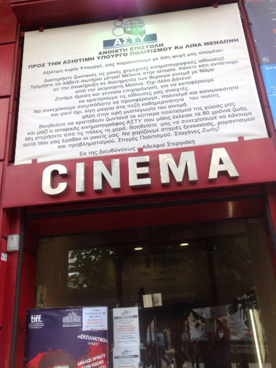 Ανήρτησαν στην είσοδο του σινεμά δημόσια επιστολή που την απευθύνουν στην Υπουργό Πολιτισμού Λίνα Μενδώνη