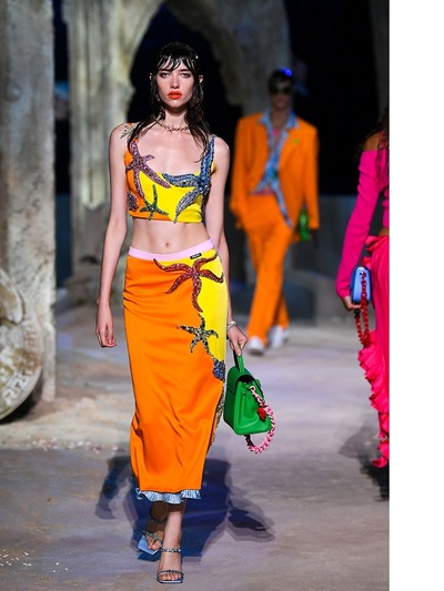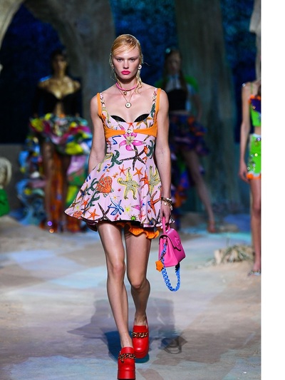 Ολοκληρώθηκε και η Milan Fashion Week, με τη Donatella Versace, να απογειώνει χρώματα και prints, αφού είχε ξεκουραστεί με μόνη συντροφιά το σκυλάκι της στην απομόνωση της καραντίνας. Οραματίστηκε λοιπόν την ουτοπική Versacepolis εμπνευσμένη κυρίως από την ελληνική μυθολογία. Η ιδέα της αναγέννησης της Αφροδίτης, κυριάρχησε στη spring – summer collection που «έκλεισε» με τη ρωσίδα καλλονή Ιρίνα Σάικ. Εκτυφλωτική παλέτα και τυπώματα με αστερίες, όστρακα, μέδουσες, κοχύλια μετέδωσαν στους θεατές του show ελπίδα και αισιοδοξία.