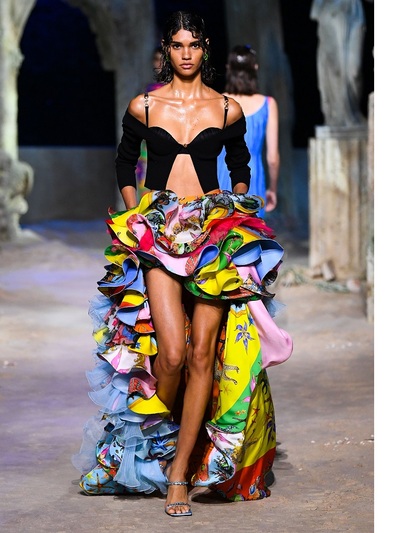 «Ονειρεύτηκα έναν άλλο κόσμο. Έναν κόσμο με ποπ χρώματα και φανταστικές υπάρξεις, όπου όλα μπορούν να συνυπάρξουν ειρηνικά» δήλωσε η designer. Kατά τους ειδικούς η βάση ήταν η συλλογή «trésor de la mer» της άνοιξης του 1992 με τη σφραγίδα του αξεπέραστου και αδικοχαμένου Gianni Versace.Τα πατρόν ανανεώθηκαν επηρεασμένα από το βεστιάριο των ανάμελων κοριτσιών του Μαλιμπού αλλά και τα ενδυματολογικά γούστα της «Μικρής Γοργόνας» της Disney…