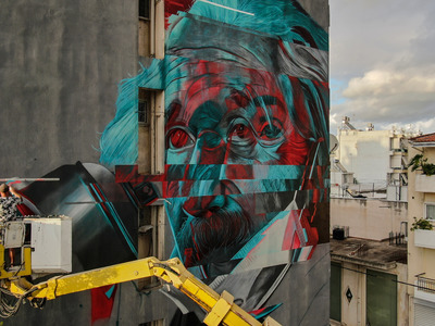Ο λόγος για τον Αινστάιν, μία μεγάλη τοιχογραφία του οποίου φιλοτεχνήθηκε στο πλαίσιο του Art Walk 5 στην οδό Μιχ. Ψελλού