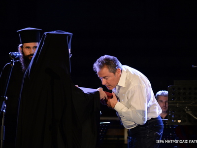 Εὐχαριστῶ τόν ἀξιότιμο κ. Πρόεδρο τοῦ Ἀπόλλωνα Πατρῶν καί τούς ὑπευθύνους τοῦ κλειστοῦ Γηπέδου Μπάσκετ, τήν Περιφέρεια Δυτικῆς Ἑλλάδος, τούς Ἱερεῖς μας πού αἳρουν μαζί μου τόν σταυρό τῆς ἀγάπης πρός τόν Θεό καί τῆς ἀγάπης πρός τόν συνάνθρωπο καί ὃλους ἐσᾶς ἀδελφοί μου, γιά τήν ἀγάπη σας καί γιά τήν προσφορά σας στό ἒργο τῆς Ἱερᾶς Μητροπόλεως. Ἐπίσης τόν Ἂρχοντα πρωτοψάλτη κ. Γρηγόριο Νταραβάνογλου, τόν κ. Μανώλη Καρπάθιο ὡς καί τόν κ. Κωνσταντῖνο Μπαλαχούτη, γιά τόν κόπο τους νά ἒλθουν στήν Πάτρα γιά τήν συναυλία αὐτή, ἡ ὁποία ἒχει τό χαρακτηριστικό καί συγκινητικό τῖτλο πού κρύβει πλεῖστα ὃσα νοήματα «Συγγνώμη Πόλη μου» καί κλείνω μέ αὐτά τά λόγια ἀπό καρδίας.