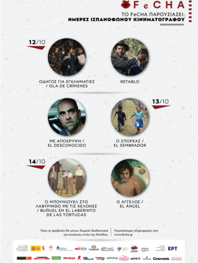 Το Φεστιβάλ Ισπανόφωνου Κινηματογράφου Αθήνας – FeCHA πρόκειται να παρουσιάσει τις «Ημέρες Ισπανόφωνου Κινηματογράφου/Días de Cine Hispanófono» το χρονικό διάστημα 12-14 Οκτωβρίου 2020, μία νέα πρωτοβουλία που συμπίπτει χρονικά με την «Día de la Hispanidad/ Día de la Raza- Ημέρα της Ισπανοσύνης/Ημέρα της Φυλής».