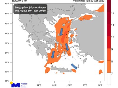 Δείτε σε ποιες περιοχές οι βόρειοι άνεμοι θα πνέουν την Τρίτη με εντάσεις έως 7 και τοπικά 8 μποφόρ