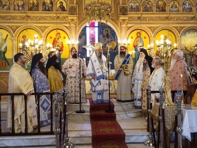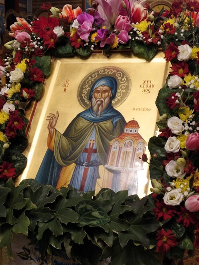 Τέλος, ο σεβασμιότατος Μητροπολίτης Πατρών εὐχήθηκε στόν ἑορτάζοντα προϊστάμενο τοῦ Ἱεροῦ Ναοῦ, πανοσιολογιώτατο Ἀρχιμανδρίτη π. Χριστόδουλο Ζώη, τά δέοντα, γιά τά ὀνομαστήριά του καί ὑπενθύμισε ὃτι ὃταν ὁ π. Χριστόδουλος ἐκάρη μοναχός, τοῦ ἐδόθη τό ὂνομα Χριστόδουλος, πρός τιμήν τοῦ Ὁσίου Χριστοδούλου ἀλλά καί τοῦ Ἀρχιεπισκόπου Χριστοδούλου, ὁ ὁποῖος τότε βρισκόταν ἀσθενής εἰς τό τελευταῖον στάδιο τῆς ζωῆς του.