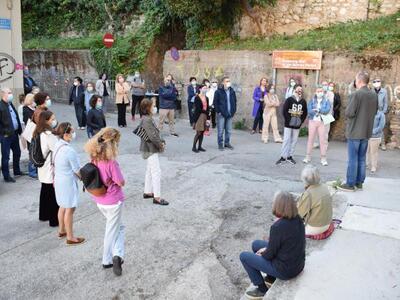 Η Πρόεδρος της Δημοτικής Βιβλιοθήκης-Πολιτιστικού Οργανισμού του Δήμου Πατρέων Κατερίνα Γεροπαναγιώτη παρουσίασε στους συμμετέχοντες το υλικό που εκτίθεται στο καταφύγιο αυτή την περίοδο και προσέφερε αναμνηστική αφίσα για το αρχείο του συλλόγου.