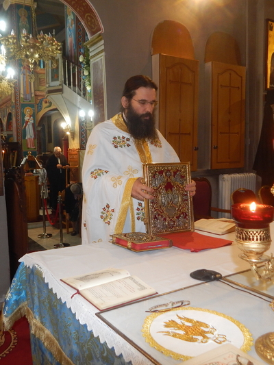 Κλείνοντας, μετέφερε προς όλους, τόσο στον Προϊστάμενο του Ιερού Ναού Αρχιμανδρίτη π. Ανδρέα Θεοδωράτο και τους συνεργάτες του, όσο και στους πιστούς, που είχαν κατακλύσει τον Ιερό Ναό, τις θερμές εγκάρδιες ευχές του σεβασμιοτάτου Μητροπολίτου Πατρών κ.κ. Χρυσοστόμου για έτη πολλά, ευλογημένα και αγιασμένα.
