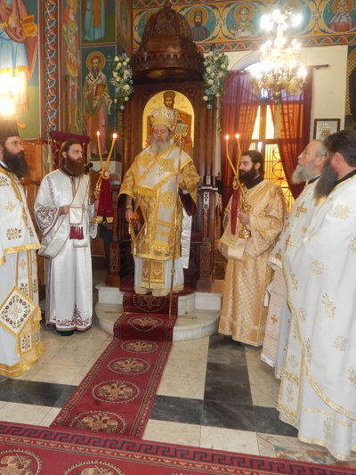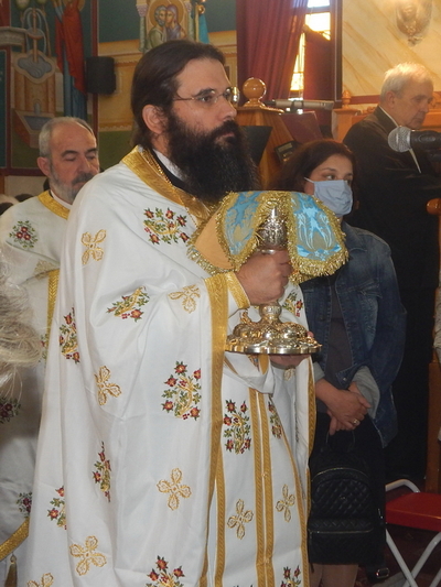 Στην Πανηγυρική Αρχιερατική Θεία Λειτουργία προέστη ο Θεοφιλέστατος Επίσκοπος Κερνίτσης και Βοηθός Επίσκοπος της Ιεράς Μητροπόλεως Πατρών κ. Χρύσανθος, ο οποίος και κήρυξε τον Θείο λόγο.