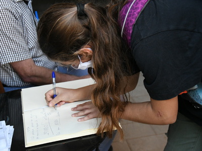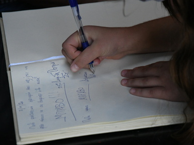 Οι μαθητές πριν φύγουν φρόντισαν να γράψουν τις εντυπώσεις και σχόλια τους στο βιβλίο που υπάρχει στο χώρο της έκθεσης.
